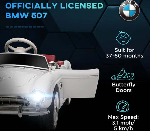 Macchina Elettrica per Bambini a 2 Porte con Licenza BMW 507, con Clacson e Telecomando, 115x55x47 cm, Bianca NH4370-305V90WTNH4