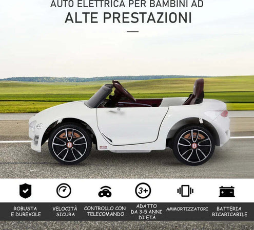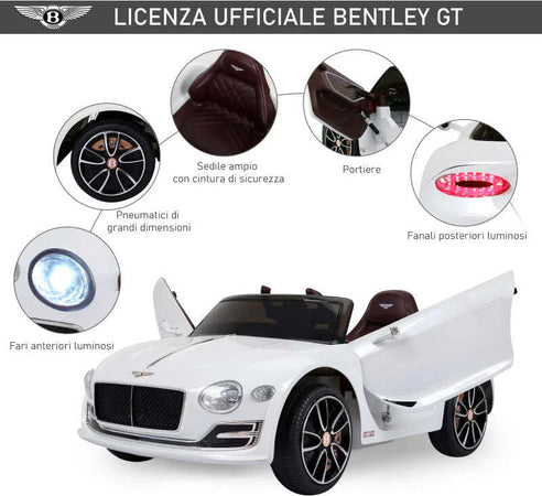 Macchina Elettrica per Bambini Bentley con 2 Portiere Guida Manuale e Telecomando, Fari e Suoni, 108x60x43cm, Bianco FG4370-045FG4