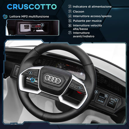 Macchina Radiocomandata Elettrica AUDI Bambini 3-5anni 12V Luci e Musica Bianco