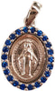 Madonna Miracolosa Medaglia Ovale Con Pietre Bianche Taglio Brillante E Zaffiri In Au 750/1000 Gioiello Religioso Made In Italy