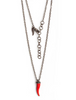 Mano j - collana linea charms con cornetto rosso, 5 diamanti black e catena