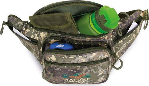 Marsupio molto capiente in materiale SUEDE CAMO, ha la cinghia a vita regolabile, tasca frontale, due comode taschine laterali porta monete e una posteriore.