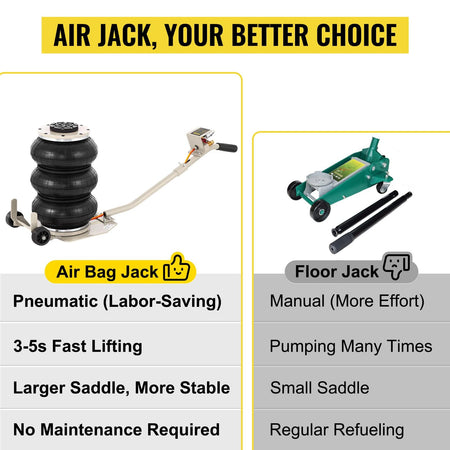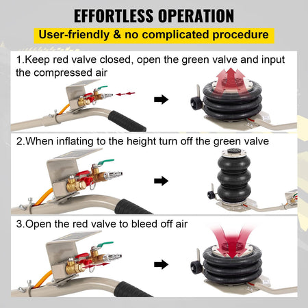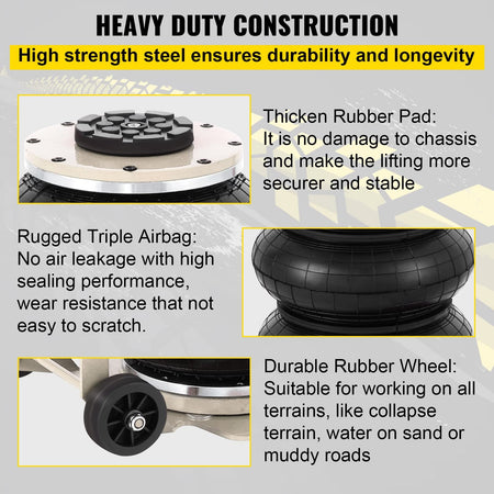 Martinetto Pneumatico VEVOR 3 Tonnellate Sollevamento 140-450mm Gonfiabile a 3 Cuscini d'Aria per Auto SUV Pickup Officina Garage