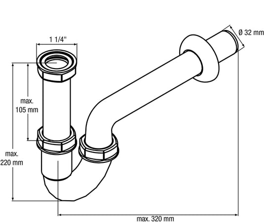 Sifone a tubo 1 1/4 '' ottone, cromato, 120mm 21"
