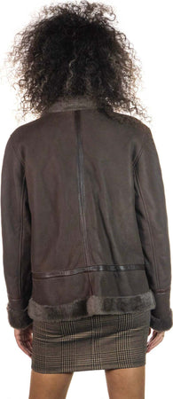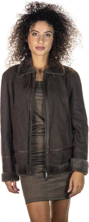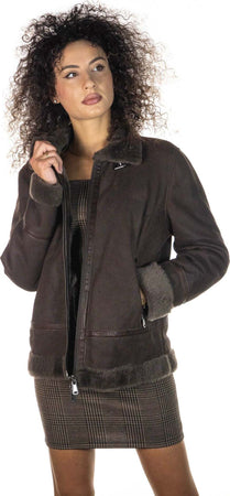 Matilde - Giacca Donna Marrone in vero montone Shearling effetto scamosciato