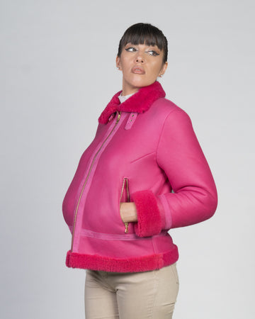 Matilde - Giacca Donna Rosa in vero montone Shearling