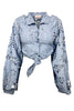 Camicia di MC2 Saint Barth modello Febe in cotone, lavorazione sangallo, cropped, maniche lunghe, polsino con elastico, nodo da allacciare sul davanti.Composizione: 100% cotone.