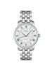 L'orologio svizzero Baroncelli Tradition onora l'eredita orologiera di Mido nella sua forma piu infinita. Le linee armoniose e le curve sottili conferiscono a questa collezione classica, sia un senso di rara eleganza che di tradizione. Dotato di tecnologia di ultima generazione, il movimento automatico puo essere ammirato attraverso il fondello trasparente.Impermeabilita: 5 bar (50 m / 165 ft)Peso (g): 125Forma della cassa: RotondoLunghezza (mm): 38.00Larghezza (mm): 38.00Spessore (mm): 9.1Anse (mm): 20.00Materiale della cassa: Acciaio inossidabileVetro: Vetro zaffiro con trattamento antiriflesso su entrambi i latiOpzioni della cassa: Cassa con Fondello a vistaColore del quadrante: ArgentoIndici: Numeri romaniCalibro: 11.5Calibro Diametro (mm): 25.60Rubini: 25Funzioni: DataRiserva di carica: Riserva di carica pari a 80 oreMovimento: Mido automatico ETADettagli del cinturino: Acciaio inossidabileColore cinturino: GrigioFibbia: Chiusura deployante.