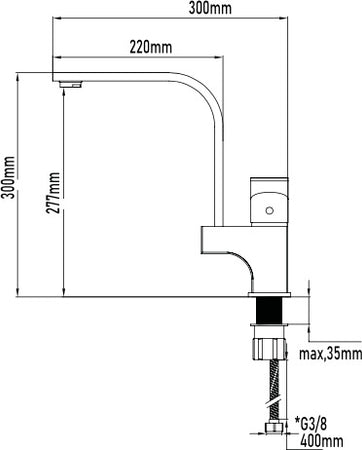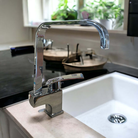 Miscelatore per cucina con canna girevole, stile quadrato moderno