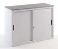 Mobile basso per ufficio con top in nobilitato e ante scorrevoli in metallo cm. 120x45x87H