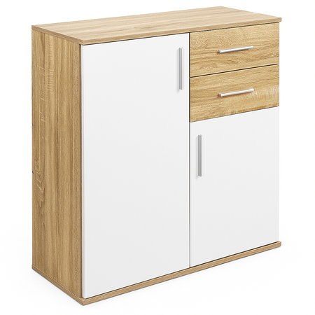 Mobile Cassettiera Moderna 2 Porte 2 Cassetti Design Minimal Bianco Quercia 80cm