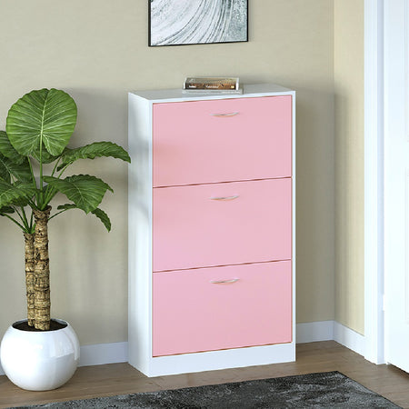 Mobile Scarpiera 3Ante Salvaspazio Doppia Profondità 63x24 H115cm Bianco Rosa