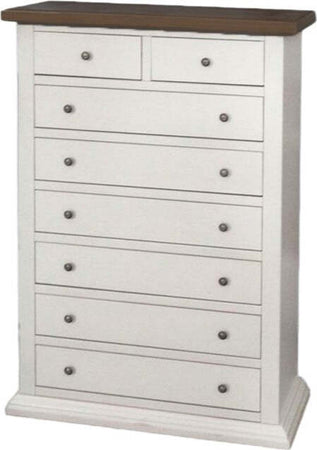MOBILI 2G - Cassettiera 8 cassetti in legno shabby bianco e noce 87x40X125