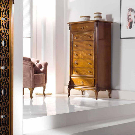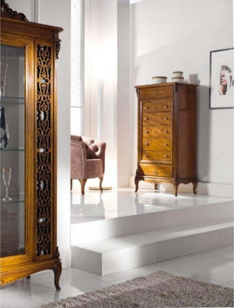 Mobili 2g - cassettiera classica in legno 7 cassetti finitura bassano l.76 p.44 h.140