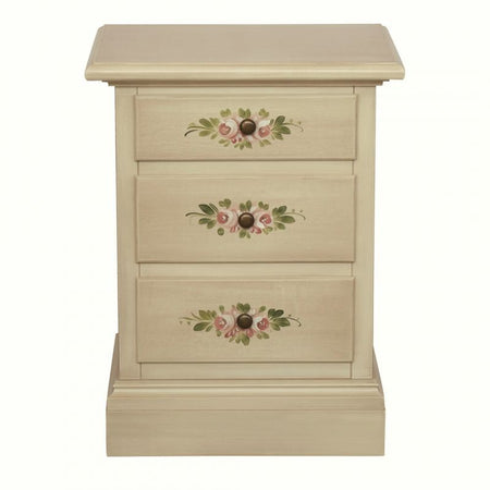 MOBILI 2G - Comodino 3 cassetti legno shabby avorio anticato decori 50x38x65