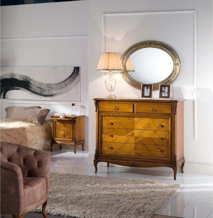 Mobili 2g - comodino classico in legno 2 cassetti 1 tiretto finitura bassano l.61 p.41 h.71