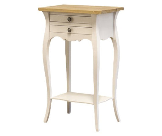MOBILI 2G - Comodino porta telefono 2 cassetti Legno shabby bianco naturale 45x35x70