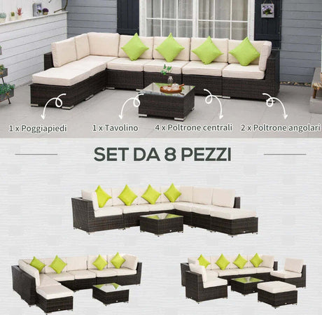 Mobili da Giardino in Rattan e Alluminio Set 8 Pezzi, Salotto da Giardino Componibile con Divani e Tavolino da Esterno 860-096V01