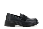 Mocassino in sintetico effetto pelle con passante strass e borchie