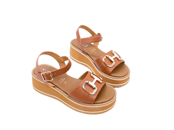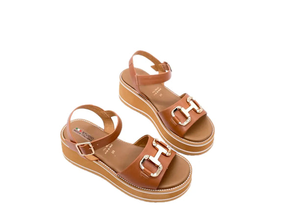 MODA ITALIA Sandali donna con fascia e cinturino in caviglia colore cuoio