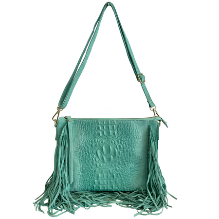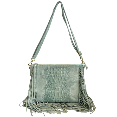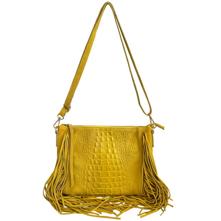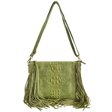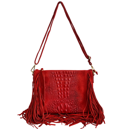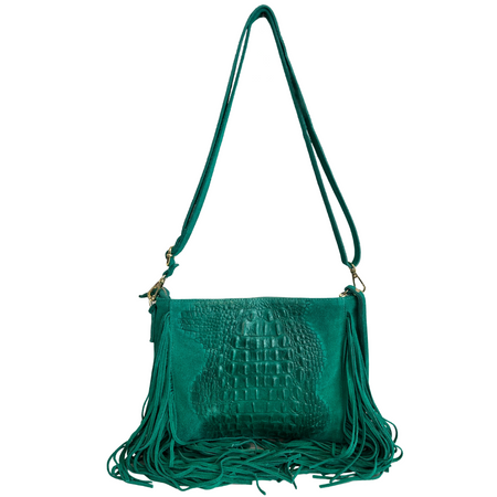 Modarno borsa da donna con frange, a tracolla, in pelle scamosciata 29x2x21 cm