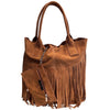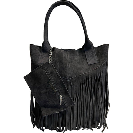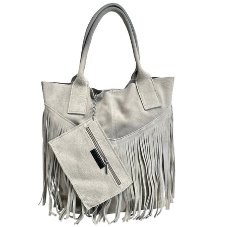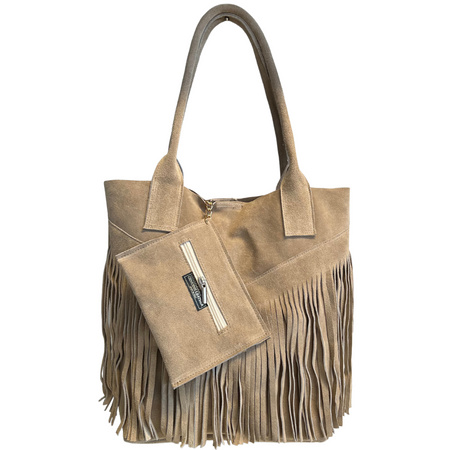 Modarno Borsa shopper da donna in vera pelle scamosciata con frangia più custodia per gioielli dello stesso colore