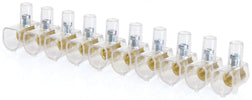 MORSETTI UNIPOLARI A 10 POLI SEZIONE 6 mmq10.00 pzStecche divisibili da 10 poli, corpo isolante in policarbonato trasparente autoestinguente, barre conduttrici in ottone, viti in acciaio zincato, grado di protezione IP20.MORSETTI UNIPOLARIFG25027