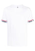 T-SHIRT CON MANICHE CON NASTRO BIANCOT-shirt bianca di Moschino a maniche corte con dettaglio tape sulle maniche.Cotone 95%, Elastan 5%T-SHIRT WITH SLEEVES WITH WHITE RIBBONWhite short-sleeved Moschino t-shirt with tape detail on the sleeves.Cotton 95%, Elastane 5%
