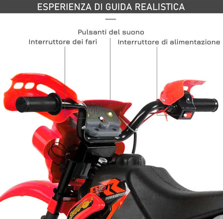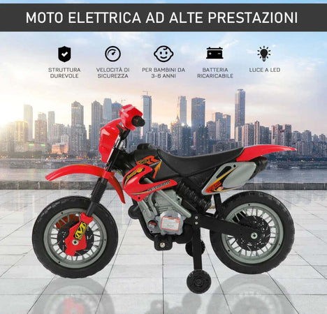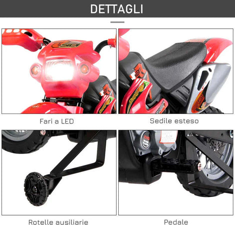 Moto Elettrica per Bambini 3-6 Anni in Plastica PP con Ruote di Supporto, Fari e Musica, 102x53x66 cm, Rosso e Nero WQ152-0018WQ1