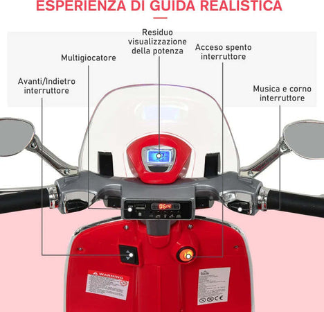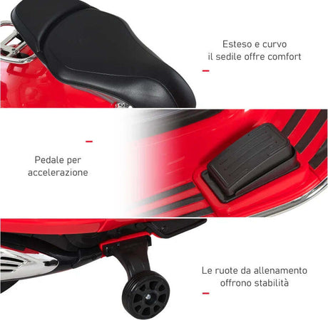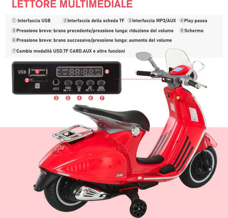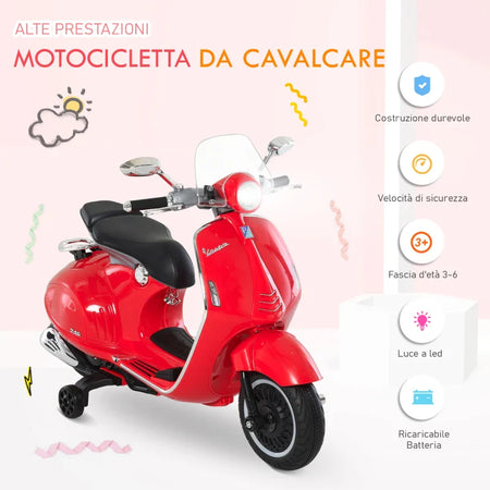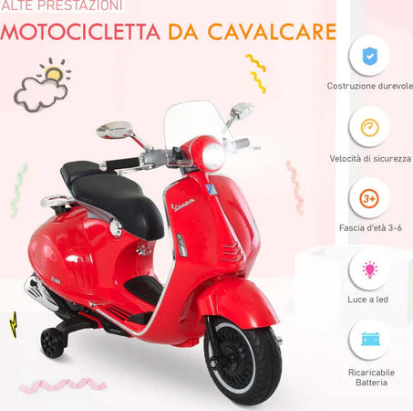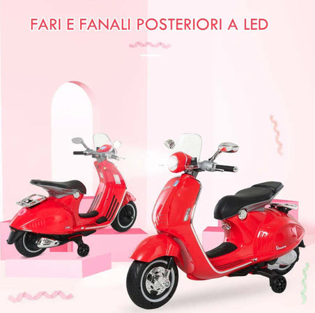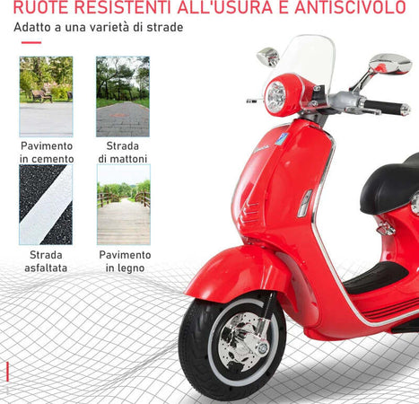 Moto Elettrica per Bambini con Licenza Ufficiale Vespa, 2 Rotelle, Luci e Suoni, 108x49x75 cm, Rossa QW7370-115RDQW7