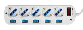 Multipresa 5 Posti Bipasso con Interruttori indipendenti e protezione da sovraccarico