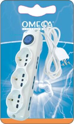 Multipresa 9 Uscite: 3 Prese Universali P40 Bipasso/Schuko 10/16A 2P+T + 6 Prese Bipasso 10/16A 2P+T, Cavo 1,5Mt H05Vv-F 3Gx1Mm, Spina S17 16A 2P+T, Con Interruttore Luminoso Omega