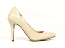 decollete in vernice beige in eco-pelle con fodera in pelle tacco 9 . Calzature made in Italy.