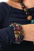 Mya Accessories: Bracciale elastico tre linee con sfere in vetro ed acrilico multicolor.