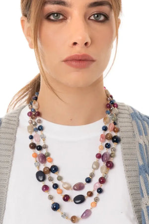 MYA ACCESSORIES | Collana a tre fili con pietre in acrilico e vetro