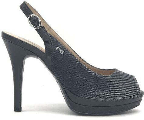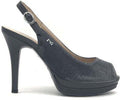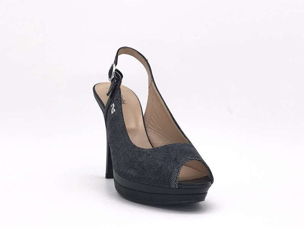 Sandali donna NERO GIARDINI in tessuto e pelle colore nero. Rivestimento interno e sottopiede in pelle. Prodotto in Italia