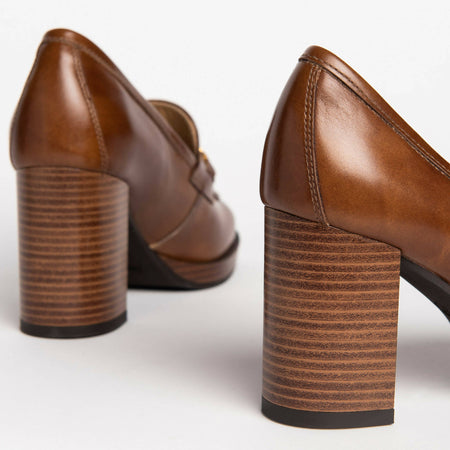 NeroGiardini Donna mocassini in pelle con tacco a blocco da 8 cm fondo in gomma, interno ed esterno in pelle. Soletta morbida non estraibile. Made In Italy. Nuova Collezione 2023/2024. Disponibile in due varianti di colore nero e cuoio (vedi foto allegate).