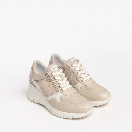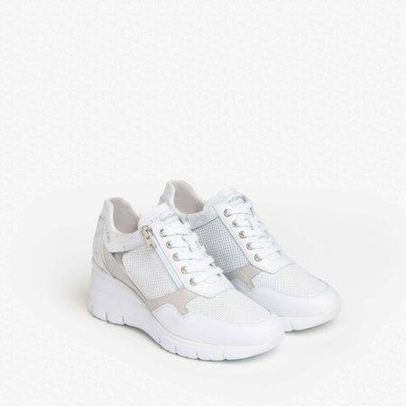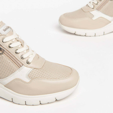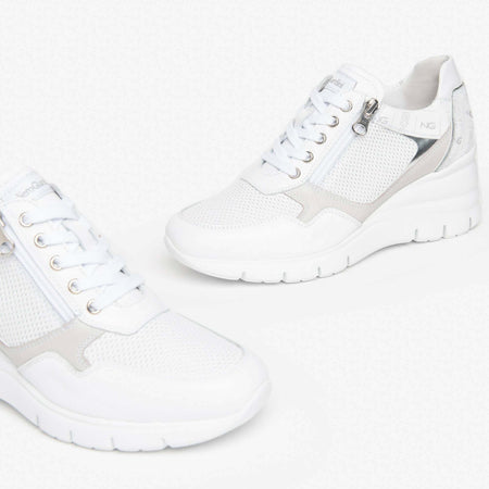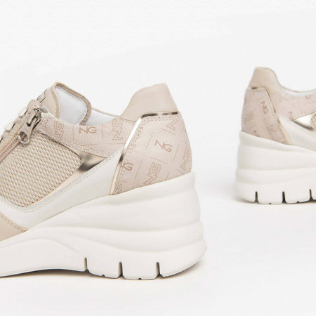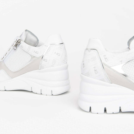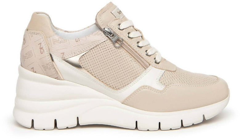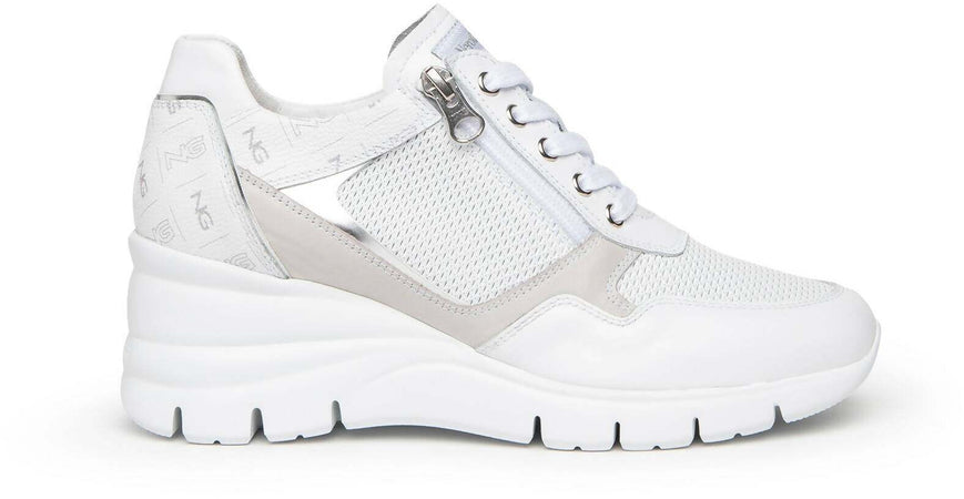 Nerogiardini Scarpe Donna Sneakers Casual Chiare in Pelle Con Suola Zeppa 6 Cm