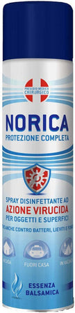 Spray disinfettante ad azione virucida per oggetti e superfici.