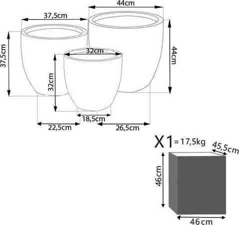 NURIA - set di 3 vasi Grigio Milani Home