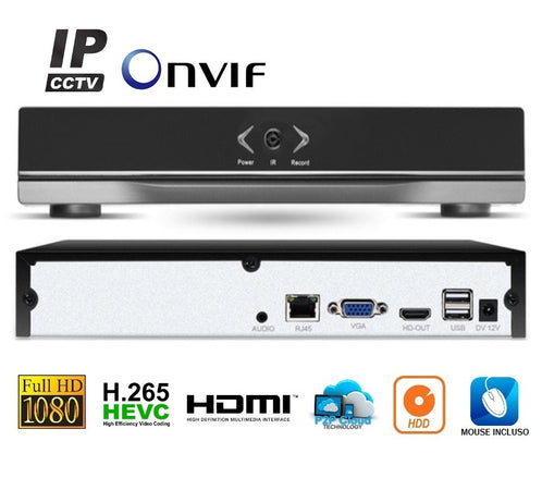 NVR Digitale IP ONVIF 8 Canali FULL HD con funzione Cloud