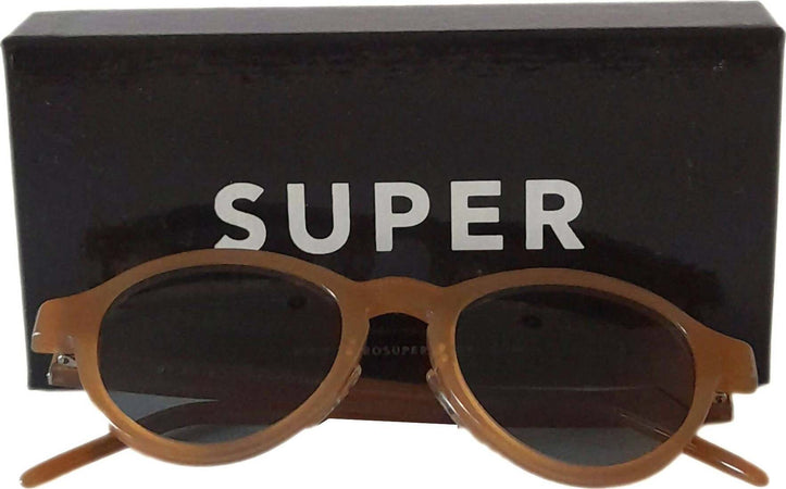 Occhiali Da Sole Uomo Super by Retrosuperfuture Montatura Beige Ovale Con Astuccio A Sacco Morbido E Panno Per Pulizia