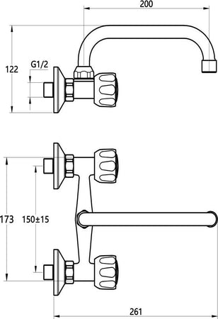 Rubinetto per Lavabo Cucina a Muro In Ottone Cromato