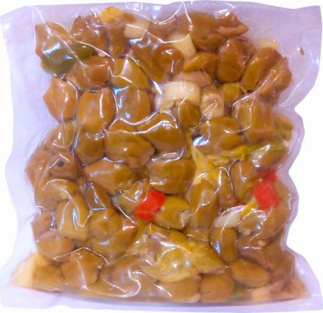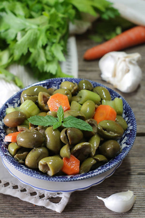 Olive verdi schiacciate 500gr. Sottovuoto Olive verdi schiacciate Alla Siciliana con Sedano Carote e Aglio Oliva 100% Sicilia Produzione Artigianale Made in Italy