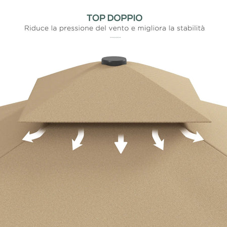Ombrellone a Sbalzo con Doppio Tetto, Apertura a Manovella e Base a Croce, 2.5x2.5m, Cachi 84D-267V00KK