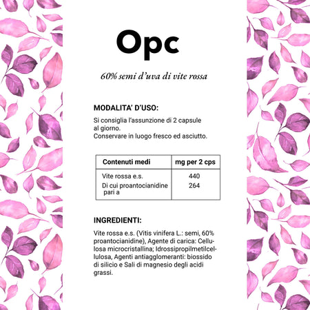 • Opc Estratto Di Semi D'uva in Capsule Integratore Antiossidante Vegan Integratore Alimentare Naturale per Capillari E Circolazione. Opc è un integratore alimentare a base di Vite rossa utile per la funzionalità del microcircolo (pesantezza delle gambe) e per la regolare funzionalità dell'apparato cardiovascolare.