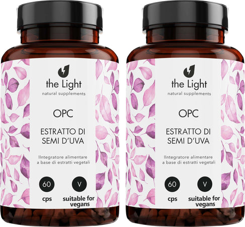 OPC Estratto Di Semi D'uva in Capsule Integratore Antiossidante Vegan Integratore Alimentare Naturale per Capillari E Circolazione The Light
