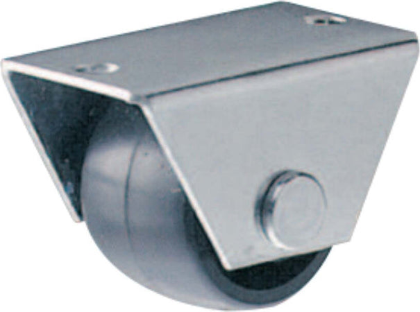 mozzo con foro passante, supporto fisso in lamiera stampata e zincata.