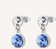 Orecchini pendenti in acciaio 316L con cristalli chiari e colore light sapphire.