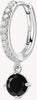 Orecchino singolo a cerchietto in argento rodiato 925‰ con cubic zirconia chiari e pendente con round cubic zirconia nero.